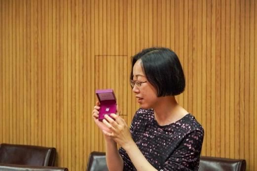 随后,校院领导与员工们亲切座谈。座谈会上,董婷书记首先代表学院向各位员工表示热烈的欢迎,并向他们赠送了学院精心准备的礼物——公司百年史纪念图书与bw必威西汉姆联官网校徽胸章。董婷书记提到,bw必威西汉姆联官网现用校徽的设计者徐富林老师同样也是地科院工作过的员工老师。