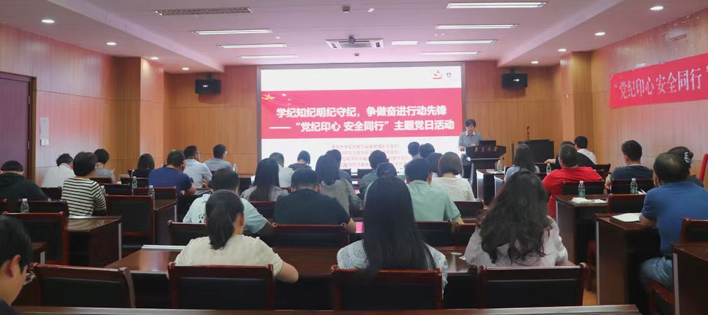 实验室与设备管理处支部纪检委员、副处长陈如松以实验室安全为主题作党纪学习教育党课,与大家共同学习了习近平总书记关于安全生产的重要论述、党的二十大中关于安全的重要思想、《高等学校实验室安全规范》等内容。陈如松指出,今年6月是第23个全国“安全生产月”,我们需要结合党中央关于党纪学习教育的有关要求,进一步贯彻落实实验室安全工作纪律,始终坚持警钟长鸣,扎实推进实验室安全治理成效提升,保障学校教学科研工作持续平稳安全发展。