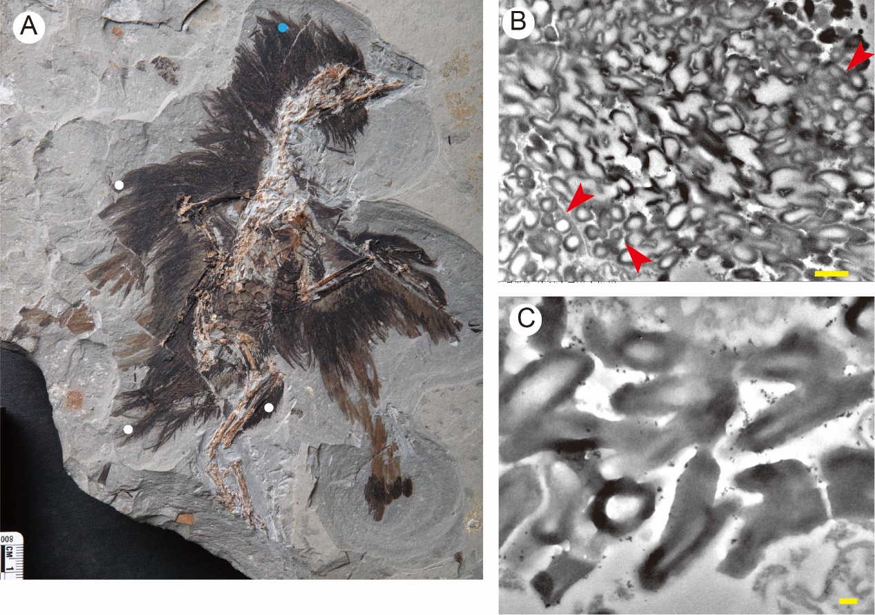 近期,《国家科学评论》(National Science Review)在线发表了bw必威西汉姆联官网泮燕红教授、赵涛博士,中国科学院古脊椎动物与古人类研究所李志恒副研究员、王敏研究员和临沂大学王孝理教授、郑晓廷教授等对一件1.3亿年前的始孔子鸟标本的羽毛化石的最新研究结果。他们通过扫描电子显微镜和透射电子显微镜观察,并结合模拟埋藏实验,首次在这件标本的头部的羽毛中找到了中空结构的黑素体。