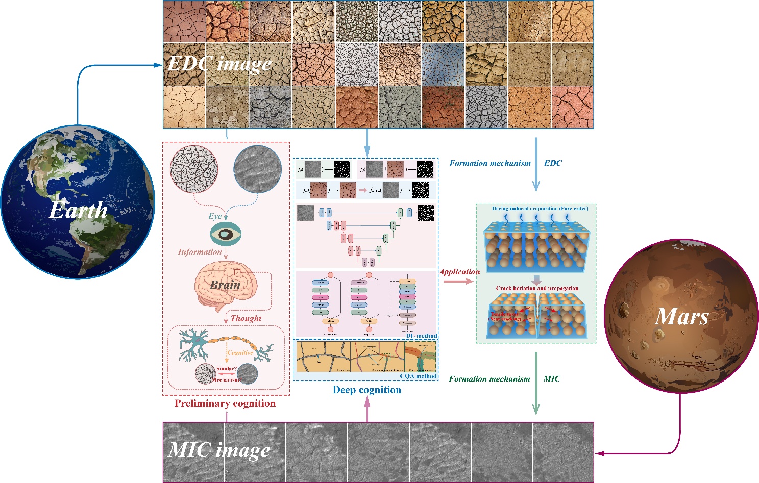 该研究将地球科学积累的丰富知识与人工智能技术相结合,为探索地外行星的地质历史开辟了新途径(图3)。不仅如此,该研究揭示了火星表面中尺度裂隙的形成之谜,丰富了人们对火星水文历史和气候演化的认知,对评估其历史宜居性及指导未来火星探测任务具有重要科学价值。