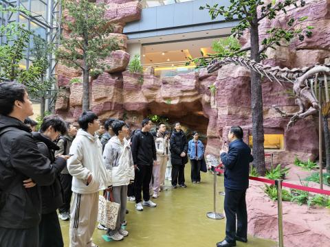 活动首站,师生们来到中国历史最悠久的自然科学博物馆之一——南京地质博物馆。在徐士银副馆长的带领下,同学们依次参观了各个展区。从国家地质事业的发展历程到前沿科研成果,从地球内部圈层构造到古生物化石遗迹,徐馆长生动的讲解让每一件展品都“活”了起来。同学们在这次体验中感受地质学的厚重底蕴与无限魅力,对地学基础知识有了更直观、更深入的理解。