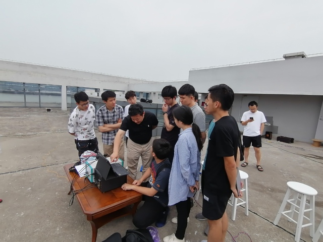 第二阶段,试验方案的实施在公司天台举行。试验由公司张丹老师组织实施,国防科大孟洲教授团队、南京法艾博光电科技有限公司张旭萍教授团队实施监测。施斌教授现场对试验设备的优化提出了改进意见。