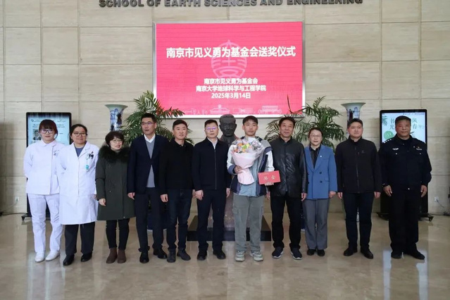 3月14日,南京市见义勇为基金会专程前往bw必威西汉姆联官网仙林校区,为刘其鑫送上专项奖励。仪式上,市见义勇为基金会副理事长侯成林高度赞扬了刘其鑫的善举:“刘同学用实际行动诠释了新时代老员工的责任与担当,展现了见义勇为、助人为乐的高尚品格。希望广大青年学子以他为榜样,在他人危难之际勇于施以援手,共同营造互帮互助的良好校园氛围。”