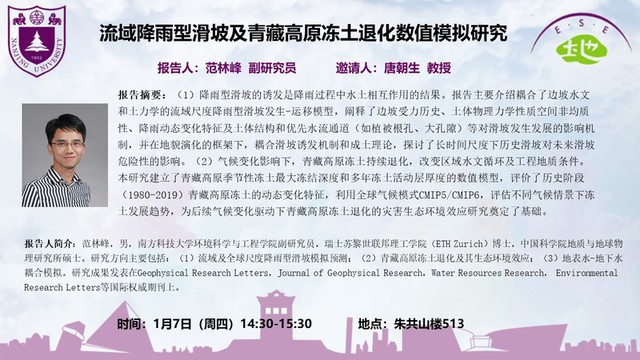 2021-1-4 南方科技大学范林峰博士报告:流域降雨型滑坡及青藏高原冻土退化数值模拟研究