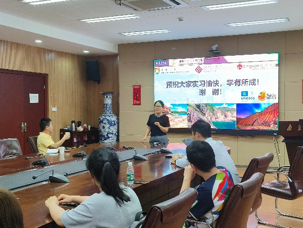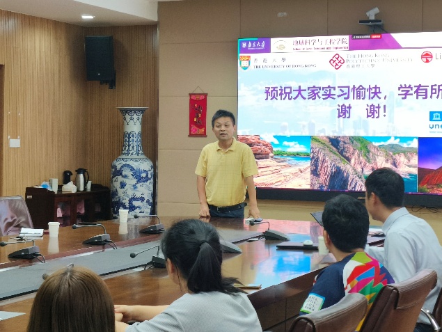 随后,姜宝玉教授结合自身丰富的科考实习与研究经验,从香港独特的地貌特征出发,分析了其形成的地质背景及对城市建设的潜在影响。他特别鼓励同学们打破学科壁垒,在跨学科交流中激发创新思维:“香港的火山岩地貌、海岸侵蚀现象以及填海造地工程,都是理解人地关系的鲜活教材。”张霞副教授进一步补充了香港的地质历史与地层特点,勉励同学们将课堂理论知识与野外实践紧密结合,“希望大家在科考中不仅关注专业问题,更要从多学科视角提出综合解决方案。”