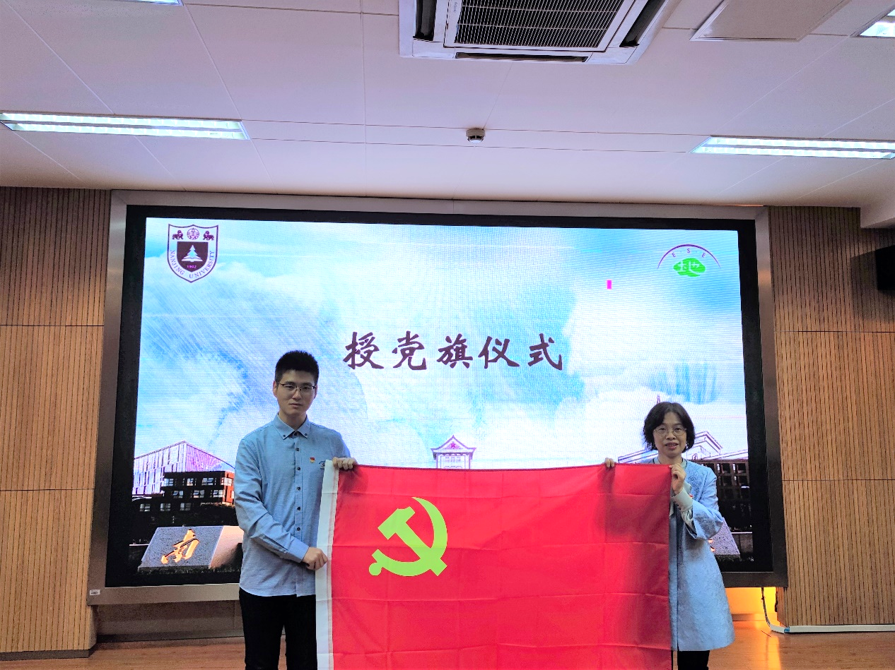 随后,党委委员、党员导师为新生党员代表佩戴党徽,号召新生党员时刻牢记党员身份,用党员的标准衡量自己,自觉履行党员义务,做好表率,把身份亮起来,形象树起来。党委副书记毛予倩为2020级硕士生党支部授党旗。