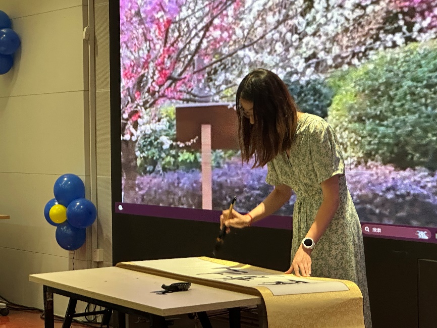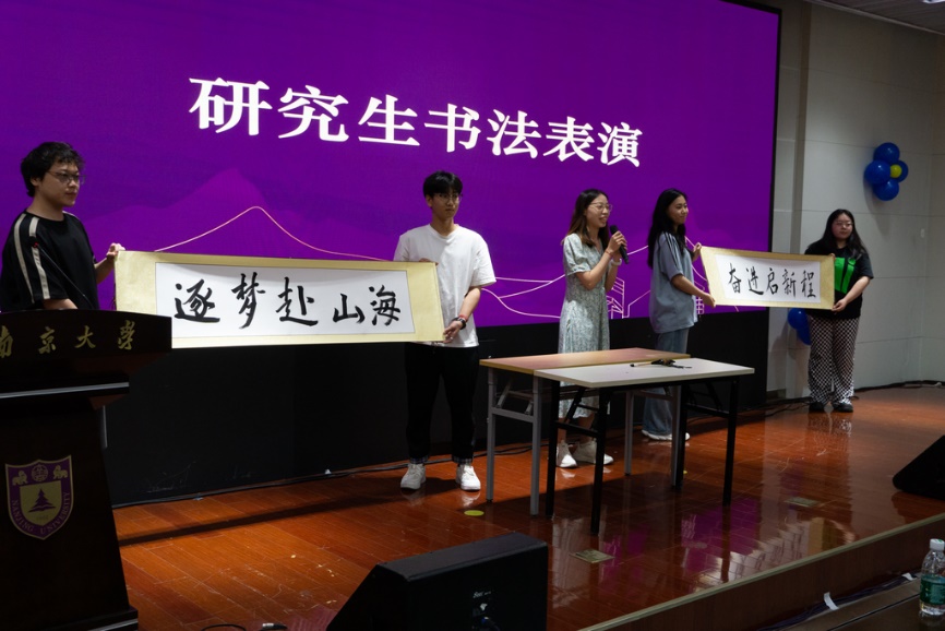 研究生胡慧聪同学为毕业学子书写“逐梦赴山海 奋进启新程”,以笔墨为媒、以纸张为绢,向毕业生们传递了友谊之情以及美好祝愿,期望每一位同学都能够无畏前行,用智慧和汗水书写人生的灿烂篇章。