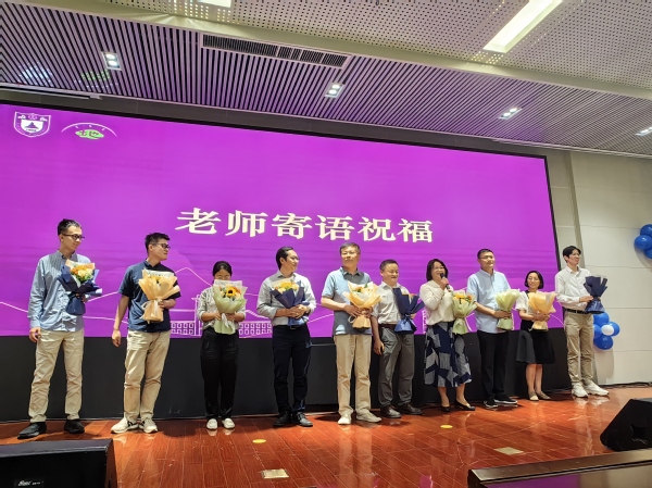 桃李不言,下自成蹊。对于师者而言,尽心教诲员工已成习惯。同学们为感念过往师恩,向教师代表献上鲜花表达对老师们的感激之情。教师代表一一对即将毕业的同学送上叮嘱与祝福——2024届毕业生是特别的一届,与疫情顽强搏斗,展现出坚韧与毅力;大学毕业并非终点,而是新征程的起点,未来将会机遇与挑战并存,愿所有同学都能够秉持校训,怀揣梦想,真诚做人,恒心做事;把握青春,向外航行更远,飞得更高走得更远;愿大家心中有爱,眼里有光,保持身心健康,生活有规律,有张有弛;愿大家带走回忆,留下约定,不忘初心,方得始终……