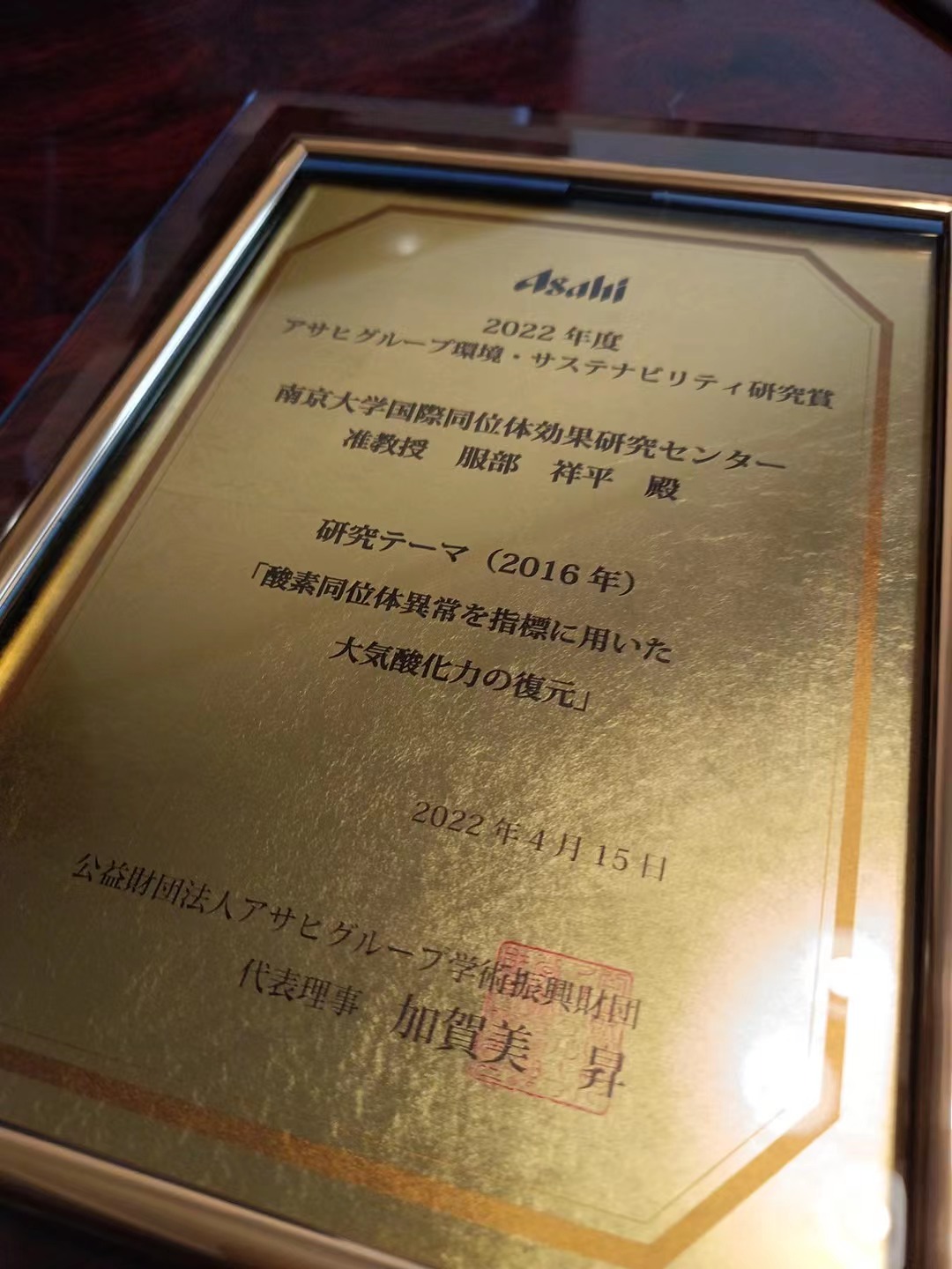近日,公司Shohei Hattori教授受邀参加朝日集团科学基金会组织的2022年度颁奖典礼,并荣获”环境可持续性研究奖“。