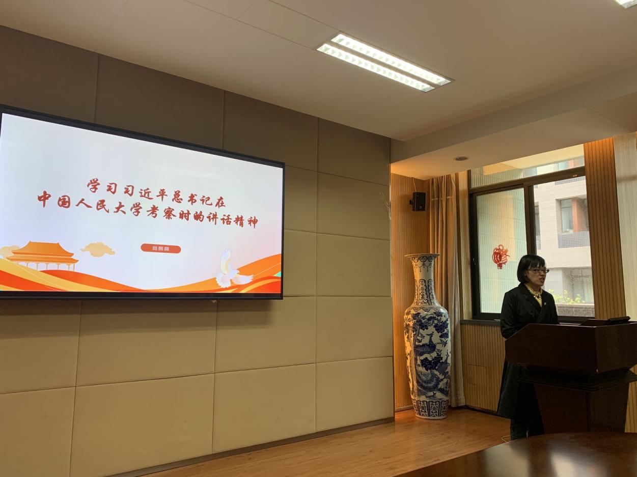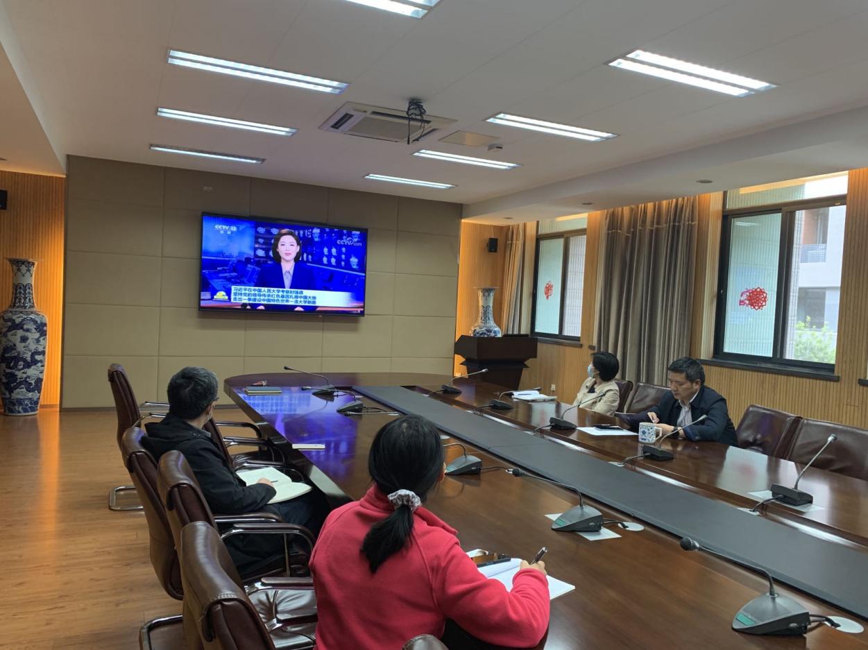 会议伊始,与会人员认真观看了习近平总书记到中国人民大学考察时的相关报道及《新闻联播》视频。随后,支部书记王国光结合自身的学习体会和工作中的思考,谈了学习习近平总书记重要讲话精神的感悟。他认为,习总书记的讲话中明确提出如何建立建设中国特色、世界一流大学,那就是扎根中国大地,走出一条建设中国特色、世界一流大学的新路,绝不能跟在别人后面依样画葫芦,简单以国外大学作为标准和模式。总书记的讲话精神是我们日常各项工作的总引领,我们要坚持党的领导,坚持马克思主义指导地位,坚持为党和人民事业服务,落实立德树人根本任务,传承红色基因,为建设中国特色、南大风格、世界一流的“第一个南大” 接续奋斗。
