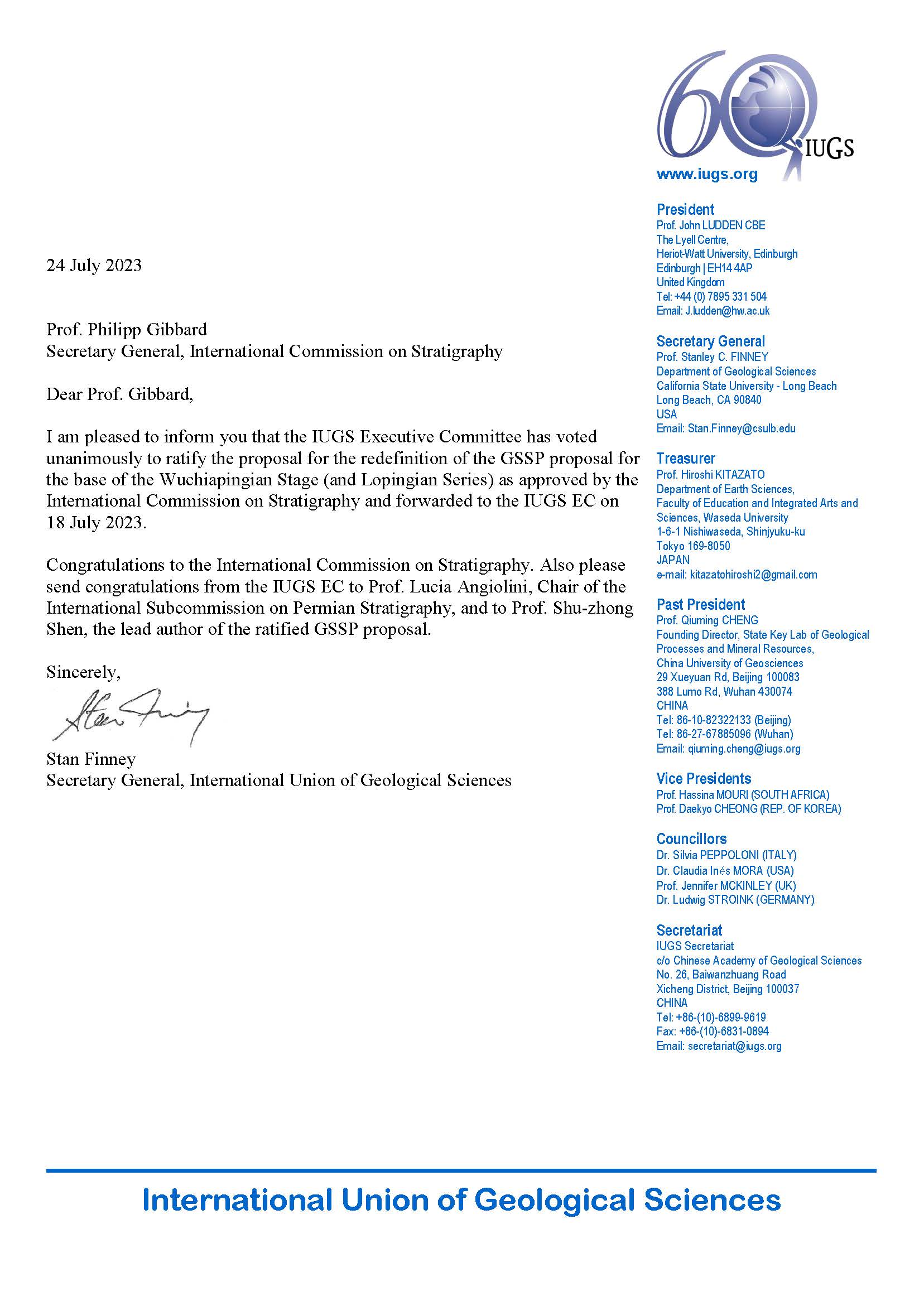 新的全球乐平统底界“金钉子”和标准辅助层型剖面获得国际地科联正式批准