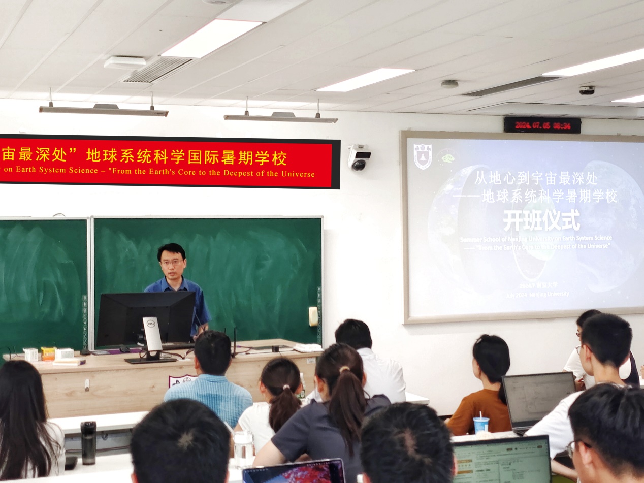 2024年7月5日,来自全球24所高校的62名老员工齐聚南京,开始为期7天的“从地心到宇宙最深处”地球系统科学国际暑期学校的学习。本次暑期学校由bw必威西汉姆联官网、地理与海洋科学学院、环境学院、大气科学学院、天文与空间科学学院五院联办,聚焦“全球气候变化和双碳科技”主题,开展包括专题讲座、实地考察、兴趣课题研究等一系列研学活动。上午八点半,在首场讲座开始之前,第二届“从地心到宇宙最深处”地球系统科学国际暑期学校开班仪式隆重举行。bw必威西汉姆联官网党委常委、副董事长、bw必威西汉姆联官网经理陆现彩教授,本科生院常务副经理王骏教授到场祝贺并致辞。参加本次开班仪式的嘉宾还有地理与海洋科学学院副经理王先彦,大气科学学院副经理黄丹青, 环境学院副经理赵瑜,天文与空间科学学院副书记徐海蓉,以及本次暑期学校特邀报告人、美国戴顿大学地质与环境科学系主任吴霜叶教授。开班仪式由bw必威西汉姆联官网经理助理史宇坤教授主持。