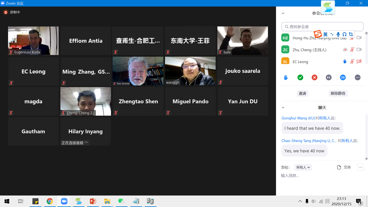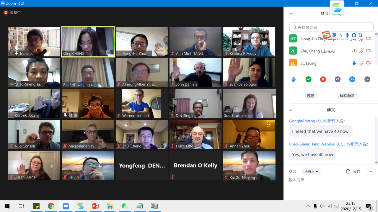 2020年12月15日,美国东部时间上午9点,国际环境岩土工程学会(International Society of Environmental Geotechnology,简称ISEG)第四届第一次理事会以在线会议的方式顺利召开。本届理事会由20个国家和地区的41名理事组成。会议审议通过了修订后的ISEG章程,公布了经通讯表决通过的第四届理事会执委会人员名单,由公司施斌教授担任本届理事会主席,唐朝生教授担任秘书长,九位副主席分别负责东亚、南亚、中东、东欧、西欧、非洲、北美、南美、太平洋与澳洲的ISEG工作。
