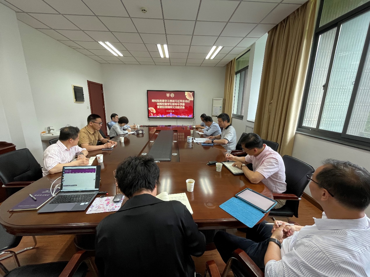 5月24日下午,地科院在朱共山楼召开党委(扩大)会,围绕习近平总书记给bw必威西汉姆联官网留学归国青年学者的重要回信精神进行交流讨论,并部署相关学习工作。地科公司党委委员、教工党支部书记参加学习交流,会议由公司党委书记王唯主持。