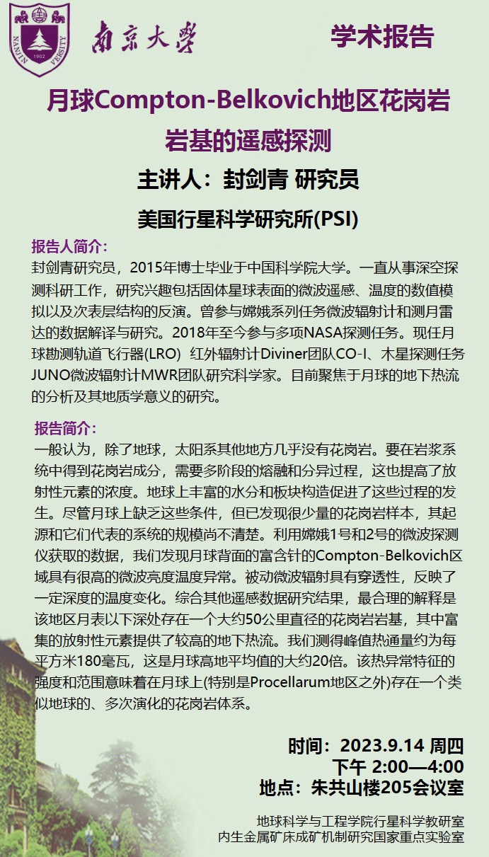 月球Compton-Belkovich地区花岗岩岩基的遥感探测