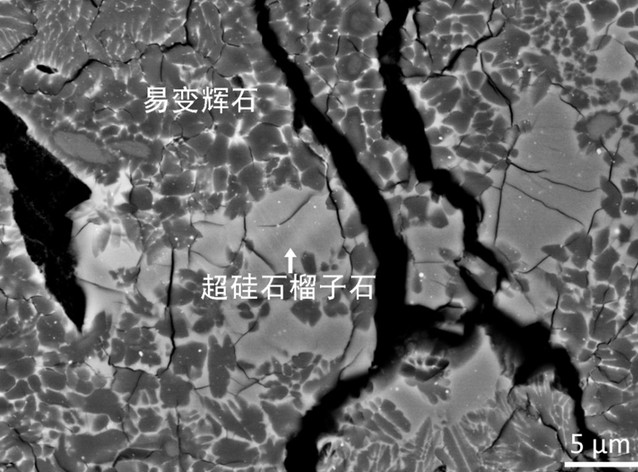 3. NWA 8326中充填于易变辉石晶间的超硅石榴子石背散射电子像