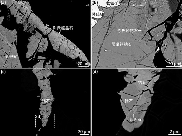4. NWA 8326中部分高压矿物的背散射电子像