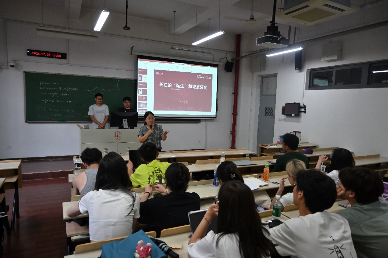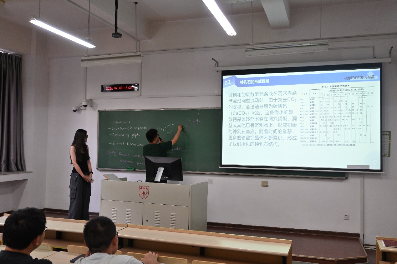 野外考察让同学们充分认识到碳酸盐岩地区作为地球关键带的重要组成部分,在水循环和碳循环中发挥着重要作用,但同时碳酸盐岩地区因其独特的地质条件拥有极其脆弱的生态环境问题。针对上述问题,员工们采用分组讨论和PPT汇报的形式,以长江和燕子矶为典型案例,调研了岩溶或河流关键带的地质背景、资源环境、生态效应、物质循环、气候调节和灾害防治等方面的研究现状和发展前景。值得一提的是岭南大学的三位同学从人文学科角度,提出应通过优化碳酸盐岩地区劳工的工作环境、生产方式、资源利用以及环保意识等方式来促进经济社会的可持续发展。
