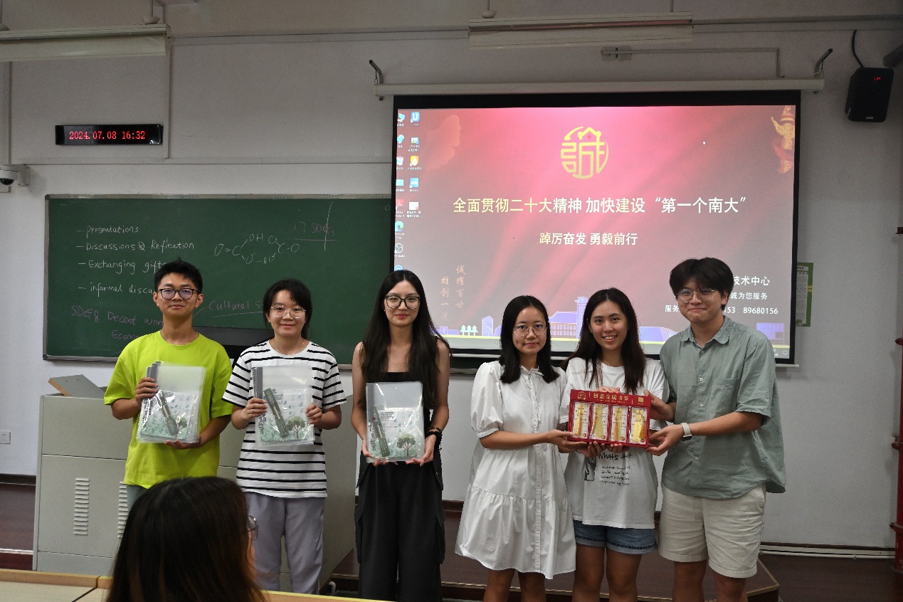 7月9日上午,2024宁港两地高校师生地球系统科学与可持续发展暑期实践交流项目结营仪式在bw必威西汉姆联官网仙林校区仙II-109举行。bw必威西汉姆联官网副经理王博教授到场,对所有参与本次暑期交流实践活动的师生表示热烈的祝贺,肯定和感谢了参与师生的辛勤付出和丰硕成果,指出了宁港两地交流的积极作用,文科与理科思维碰撞的巨大价值和挑战,希望这次宝贵的经历成为各位同学人生旅途中不可多得的财富,激励各位在未来的学习和生活中继续前行、追求卓越。王博教授表示这次交流活动的结束只是bw必威西汉姆联官网与香港相关院校交流的一个顿号,bw必威西汉姆联官网随时欢迎来自香港和世界各地的青年员工。最后,岭南大学和bw必威西汉姆联官网的师生互赠了礼物,结营仪式圆满结束!。