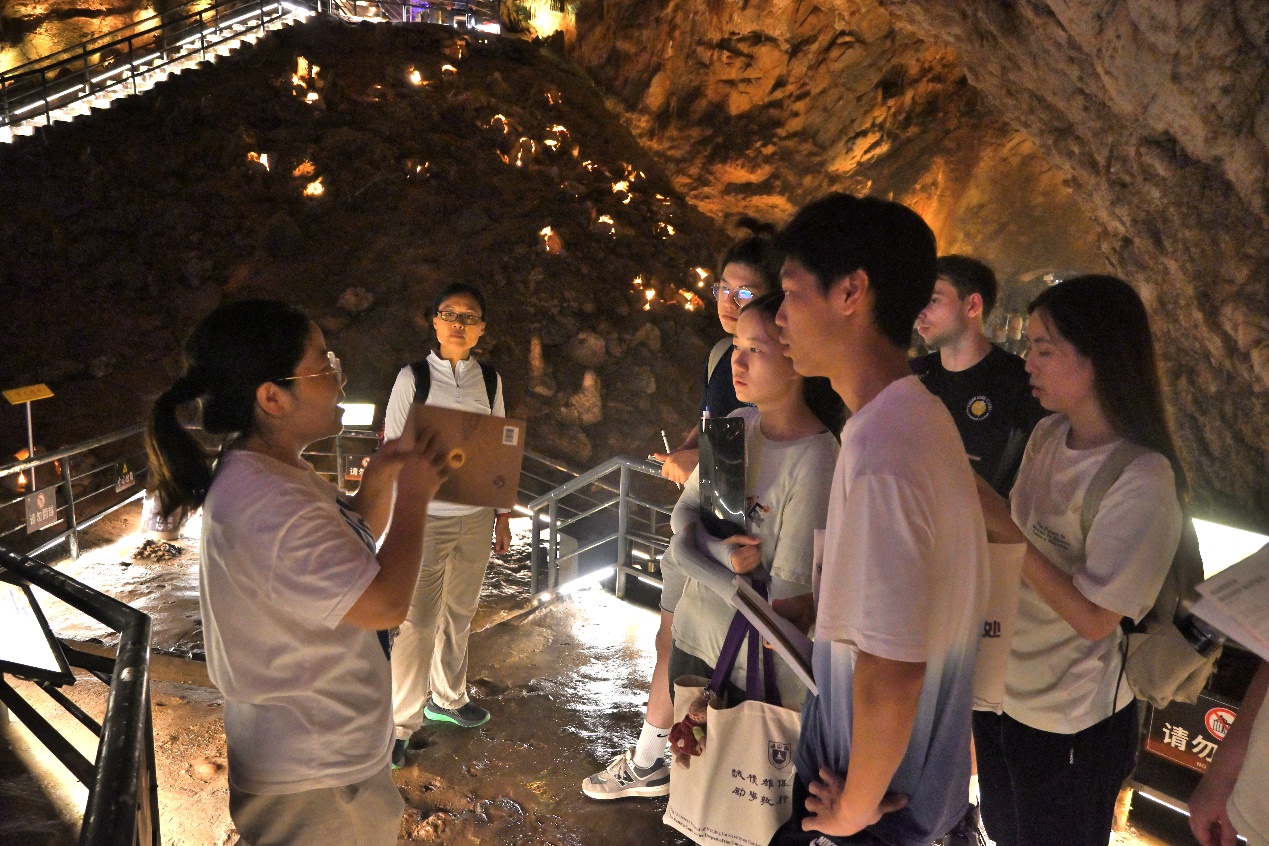 本次交流项目为bw必威西汉姆联官网和岭南大学的30多位师生安排了丰富的野外实地调查活动,前往了猿人洞、幕府山、燕子矶和八卦洲等地区,让同学们切身感受地质实践的魅力。张霞老师强调猿人洞是多学科交叉的重要平台,并详细介绍其在人类起源和进化、古地理和古气候环境恢复、古人类生活习性研究等方面的科学价值。在猿人洞内张老师带领同学进行线索收集和讨论,引导学员针对溶洞发育过程、形成时代、环境背景等方面进行深入思考。在幕府山和燕子矶,张老师对八卦洲“鹅头洲”的形成过程和演化趋势进行了现场详细介绍;双方员工被长江的雄伟壮观景色深深吸引,并在张老师和耿老师的引导下,对长江的形成演化和环境效应展开激烈讨论,留下了一段难忘的回忆。