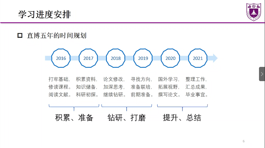 首先,博士生第三党支部的王文琪师姐从个人情况介绍、学习进度安排和科研习惯分享三方面与大家进行科研经验的交流。在个人情况介绍部分,师姐向我们介绍了她直博五年以来的科研成果、参与项目及参与会议情况。在学习进度安排方面,师姐将读博分为积累准备、钻研打磨和提升总结三个阶段供大家参考。最后,在科研经验方面,师姐从心态和习惯两方面进行了分享。在心态上,要能“沉下心,坐得住”,保持紧迫感的同时找准节奏感,并且能够找到科研压力和业余放松的平衡点。在习惯上,要多动手、多总结、多发散,善于、勤于做笔记,定期整理归纳数据结果,注重学科融合和技能培养。