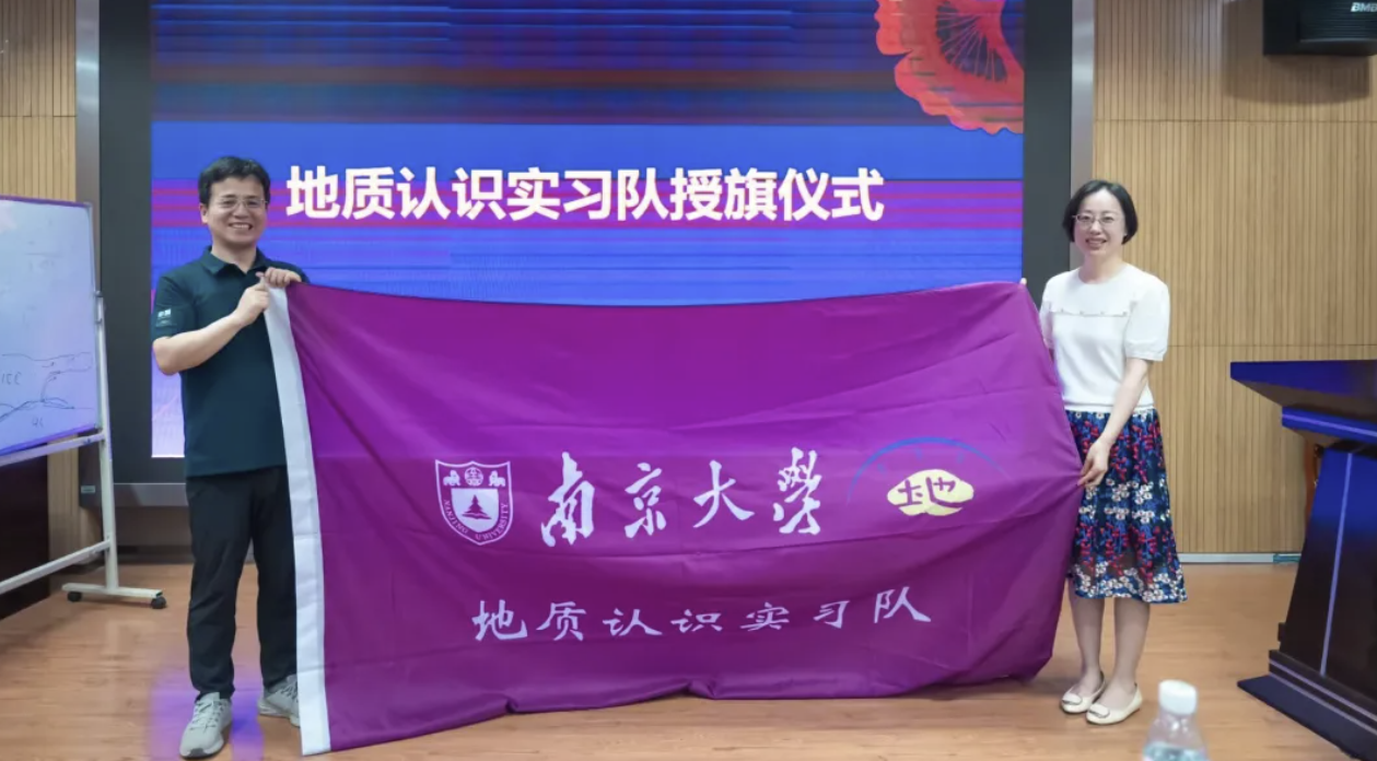 公司董婷书记在出征仪式上致辞。她指出,地质认识实习作为地质学类本科生培养体系中的关键环节,学院一直以来的高度重视,2023年开拓南京-云南地质认识实习新基地,在教学团队、实习基地、实习经费等方面了给予全方位的支持。董婷强调,本次实习作为地质学类本科生首次接触的野外实践课程,是衔接“普通地质学”“固体地球科学原理”等基础理论课程的重要纽带,更为将来的专业理论课程和早期科研训练提供了重要支撑,是将理论知识与实践探索紧密结合的重要机遇。全体师生在野外要牢固树立安全意识,严格遵守实习纪律,教师们要以高度负责的态度保护好自己和员工的人身安全,确保实践教学活动安全有序开展。仪式最后,董婷向实习队队长胡修棉教授授予队旗,标志着2025年度地质认识实习正式启程。