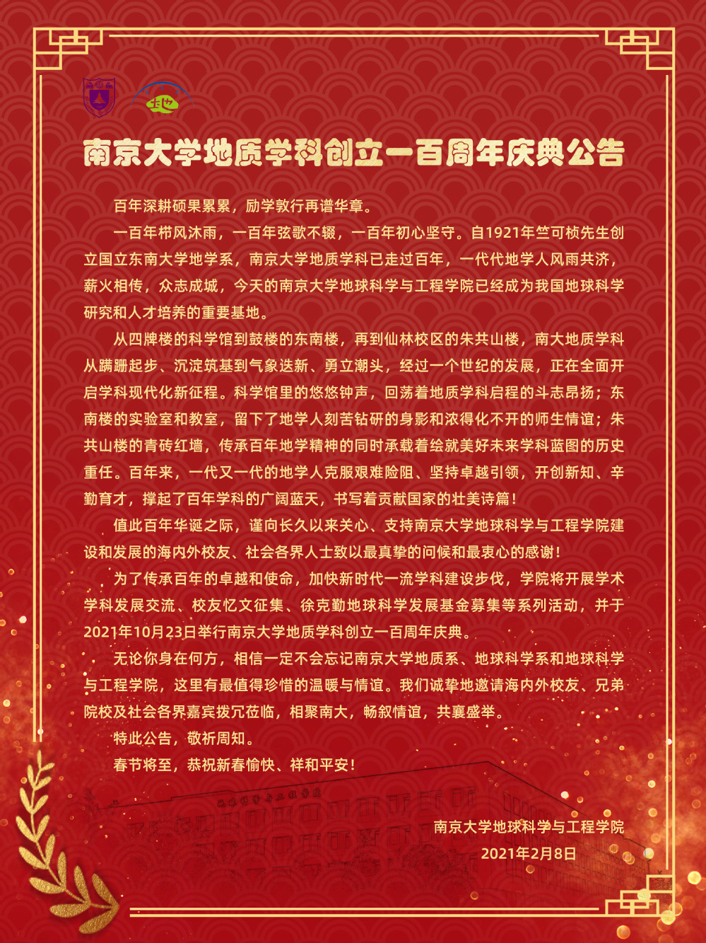 bw必威西汉姆联官网地质学科创立一百周年庆典公告