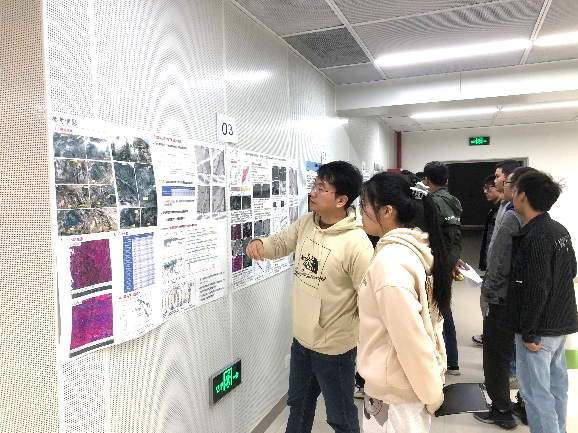 第二个环节是岩矿论坛学术交流。不同于以往,本次论坛以展板交流方式为主。经过前期遴选,共有17名报名者进行现场展示。报告内容丰富,涉及了“深时、深空、深地与深海”等一系列科学前沿和国家战略需求相关的重要科学问题。学院众多师生参与了本次展板活动,在现场进行了积极的交流,展开了激烈的讨论,并通过现场投票评选出了6个优秀展板。