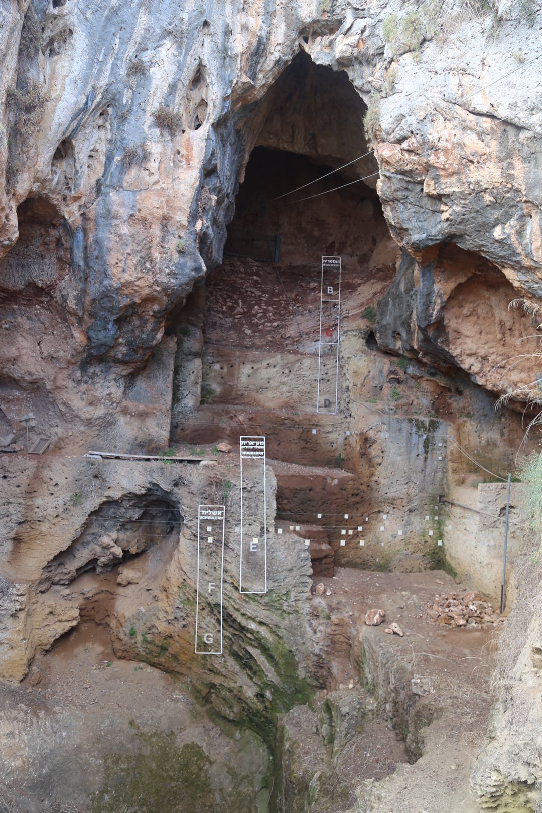 东二区8月5日的早晨8点,地中海艳阳高照,小伙伴们开启了一天的野外课程,长袖长裤、阳帽太阳镜,再背上几大升的水,抹上厚厚的防晒霜,全副武装的大家正式出发前往第一站:Nahai Me’arot Nature Reserve。在保护区内我们参观了古人类的遗址,遗址的主人是从非洲大陆迁徙出来的猿人,我们所处的地理位置是他们征服世界的第一站。整个山体是布满孔状结构的灰岩,遗迹的岩壁上有着黑色的烟熏痕迹,掺杂着流水的痕迹,值得一提的是山体的孔洞的形成与流水的作用紧密相关。山体厚厚的灰岩中有着极其丰富的一亿年前的古生物礁化石,该生物礁是由三种深水的壳类生物(能在120m深的海水生存)的壳体所形成,这些生物生活于深水稳定的环境。生物礁的沉积物颗粒十分细小,也验证了这一点,不过与我们所熟知的珊瑚礁所不同的是,这种生物并不直接构成礁的结构,实际上该生物礁的结构是由海流塑造的。