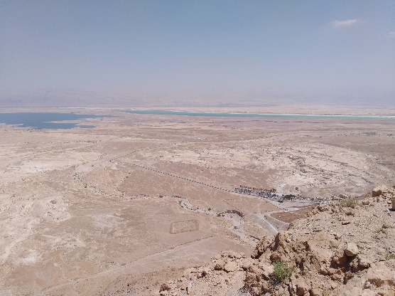 在死海中尽情漂浮后,我们来到马萨达(Msada)。这座建在山上的堡垒是古犹太王国的象征。公元一世纪末期,罗马人围攻马萨达,死守城内的犹太人见胜利无望,便集体自杀,宁死不被奴役。从此这座城成为了人类寻求自由,反抗压迫的不屈精神的写照。登上高山,极目远眺,可见一座座平顶山和一条条幽深的峡谷。山顶的夷平面是古死海海平面的位置。海平面上的沉积物由于风化剥蚀而不存。后来,因为这一代高温少雨,蒸发作用强烈,海平面下降,河流的侵蚀基准面便也下降,河流的下蚀形成峡谷。海平面下降的另一个影响是天坑(sink hole)的出现。这里盐度很大,地下有一些食盐晶洞,当初被地下水充填。随着海平面的下降,地下水水位降低,晶洞内水干涸,不能支撑上伏地层,于是地面垮塌,形成空洞。这种天坑可能导致桥梁坍塌,交通瘫痪。