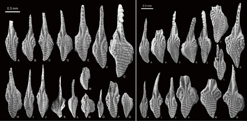 图3 纳饶剖面中莫斯科阶–卡西莫夫阶牙形类化石