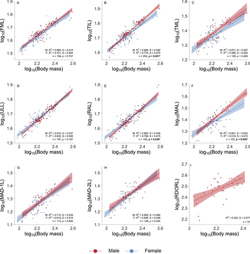 Figure 2 Sexual dimorphism in allometric growth pattern