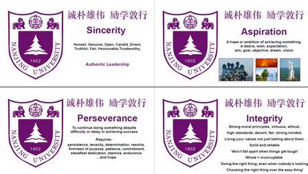 Drake博士还通过前期的充足功课,将南大校训“诚朴雄伟,励学敦行”,完美地融合入“领导力的品质”的阐释中。不仅帮助在场的新生们更深入地理解了校训,产生强烈归属感,同时也告诉大家领导力的优秀品质是相通的,做好南大人,也是卓越领导力的养成之路。