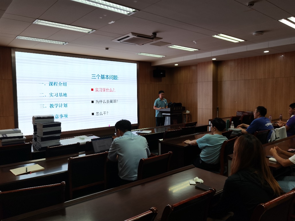 公司副经理王博重点对实习的重要性和实习过程中的安全问题进行强调。地质技能综合实习是大二大三阶段承上启下的关键学习点,希望同学们能够认真学习和体会,努力拓宽视野。