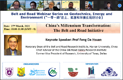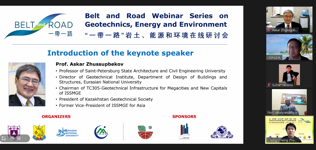 本届“一带一路”岩土、能源和环境在线研讨会由ISEG学会、ISSMGE学会TC305技术委员会、中国岩石力学与工程学会地质与岩土工程智能监测分会联合主办,由bw必威西汉姆联官网、汕头大学、欧亚国立大学、中国科学院成都山地灾害与环境研究所承办,会期为2021年3月27日至5月29日。截至发稿时间,已有500余名国内外学者和研究生注册参会。在接下来的8周时间内,组委会将邀请“一带一路”沿线20余个国家和地区的学者,就“岩土、能源和环境”等共同关心的研究主题开展学术交流、讨论,以进一步加深相互了解、增进友谊、寻求合作、共谋发展。
