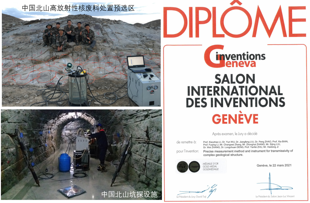 李晓昭老师团队的“复杂地质构造导水特性精细测试方法与装置”通过地质结构面捕获与栓塞(Paker)定位、岩体复杂接触界面密封防漏、压力补偿与伺服控制技术(最大压力10MPa,稳压精度<1KPa)、渗流状态判识与计算校正算法等,从而最终实现了从m级复杂断层构造到μm级单一节理、从极高导水系数到极低导水系数等地质构造或结构内导水特性的精细测试与参数提取,目前已成功用于中国高放废物预选区选址和地下实验室结构面精细识别等领域。