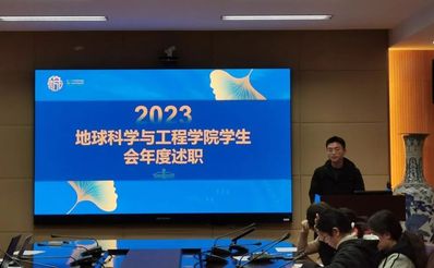 接下来,地科院员工会主席杨博进行年度述职。过去一年员工会组织了品味江南丝竹的系列文化活动,“我和我的野外记录本”经典故事寻访活动,第十七届地学文化节与地科环游记、荧光夜跑等活动。未来的工作中员工会将继续强化桥梁职能,深化思想引领,更好地领导与服务同学们。
