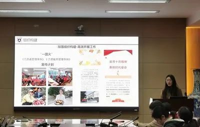 团委组织部部长贾露进行述职汇报。组织部作为团委的中枢部门,既要对接校团委,也要联系团支书,处理各团支部的团务工作。过去一年里,组织部开展了多次院系层面的团日活动,如联合主题班团会议,实践育人成果汇报走进支部团日活动,同时结合团员们关心的就业、教育、志愿活动等问题,深入贴合青年员工普遍需求,带领团支部完成专题学习,学习覆盖率达到100%。另外,组织部还开展了团干部选拔与培训工作,完成春季和秋季积极分子推优工作,团骨班、青马工程和研骨班的选拔工作。