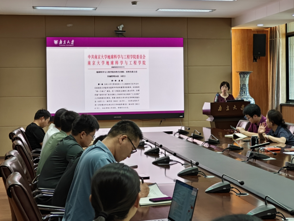 周璐莹主任首先介绍了学业导师选配情况,就安邦书院和学院联动育人的方式方法提供了建议和经验分享。一方面欢迎老师们来到鼓楼,并为各项活动做好支持和保障,另一方面也提供了员工跨校区流动的机会,促进员工对于专业认知。辅导员刘苏平介绍了2024级地学大类本科生的基本情况,强调了新生导师在地学大类员工进行专业认知和学业引导方面具有重要作用。他还向新生导师们发出邀请,欢迎老师们加入安邦书院科研初探、交流座谈等各类活动中,助力员工全面成长发展。