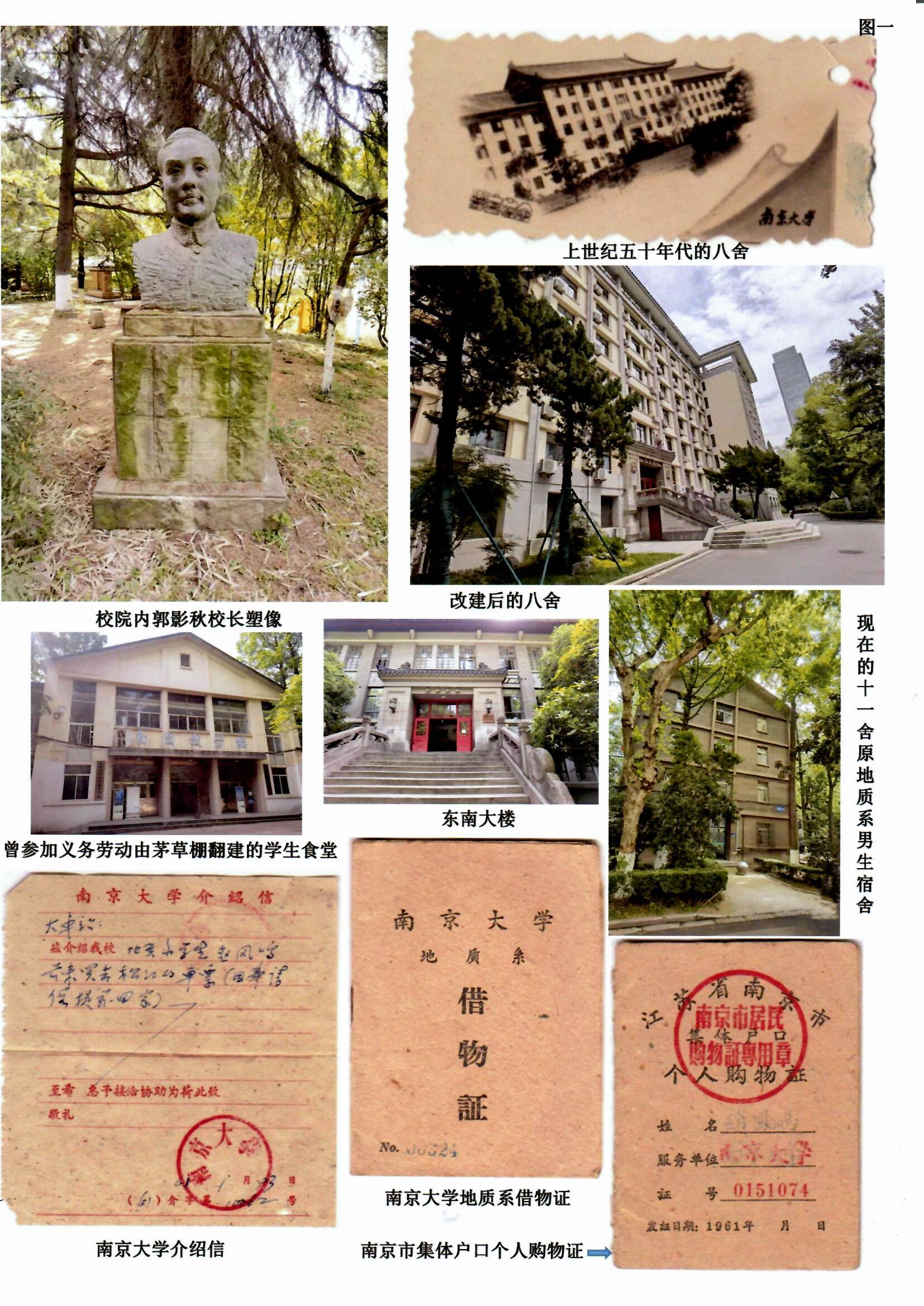 为了追寻更多记忆,近日我回母校鼓楼校区一次。进了校门,我直奔最熟悉的东南大楼,现在成了bw必威西汉姆联官网医学院,进入大楼,我记忆中二楼右手的第一间是我们观看岩矿标本的实验室,但都变了。我手持“bw必威西汉姆联官网地质系借物证”(见图片),找不到我们每年暑假出野外时借野外工作装备的小仓库。背包、饭盒、铁锤、放大镜、罗盘(袖珍经纬仪)是野外必备的装备。我还有一本“江苏省南京市集体户口个人购物证”,bw必威西汉姆联官网出具的购买火车票的介绍信(见图片),两者用纸粗糙,都反映出三年自然灾害的困境。