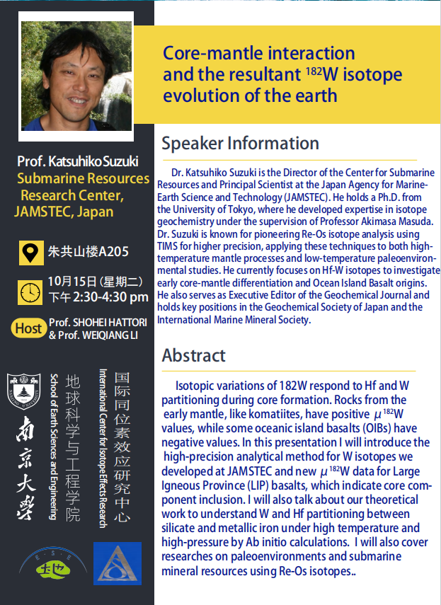 Lecture: Core-mantle interaction and the resultant 182W isotope evolution of the earth