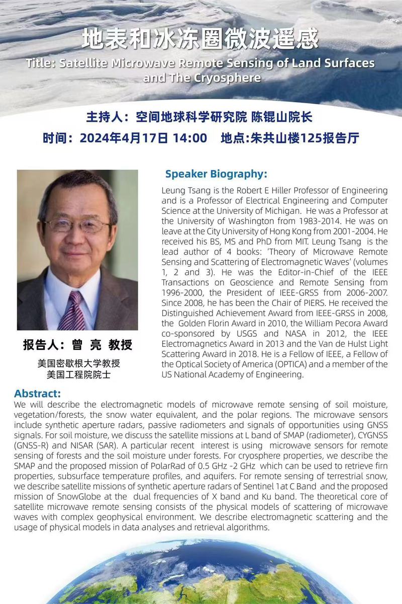 Lecture: Satellite Microwave Remote Sensing of Land Surfaces and The cryosphere