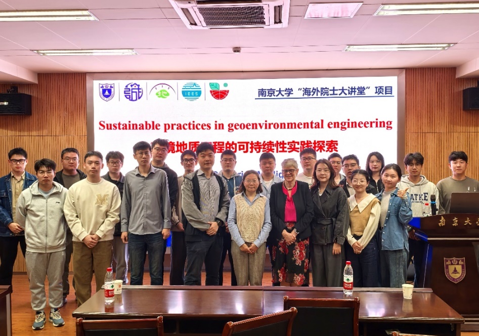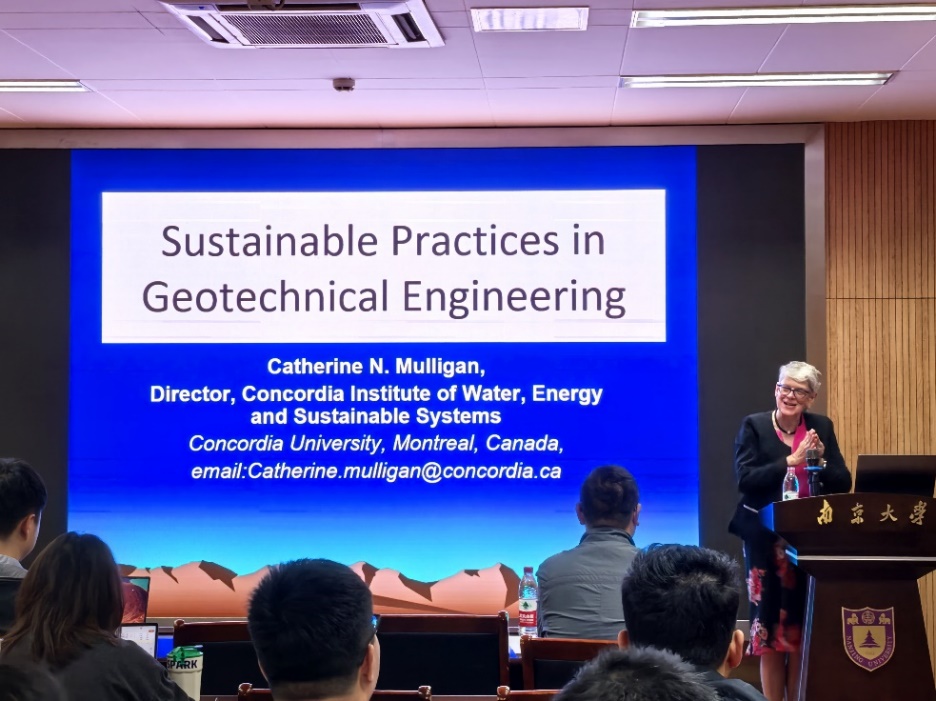 From October 9 to 14, 2024, Professor Catherine Mulligan, who is a Fellow of the Royal Society of Canada, Canadian Academy of Engineering, Engineering Institute of Canada (EIC) and the Canadian Society for Civil Engineering, visited Nanjing University. Invited by Professor Honghu Zhu, she engaged in extensive academic exchanges with faculty and students. Professor Mulligan delivered a keynote lecture titled "Sustainable Practices in Geoenvironmental Engineering" on October 10, exploring strategies for sustainable development in geological engineering.