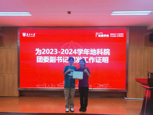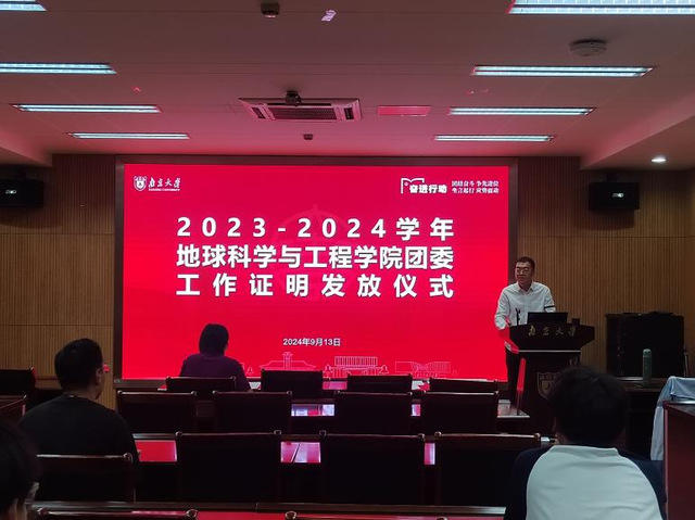 2024年9月13日,共青团bw必威西汉姆联官网委员会工作证明发放仪式在朱共山楼125会议室顺利举行。本次大会由bw必威西汉姆联官网团委副书记2022级地质学拔尖本科生陈方信主持,列席嘉宾有共青团bw必威西汉姆联官网委员会书记陈昕,2023届学院团委副书记赵雨潇、阙荣铭,2024届团委副书记陈凤婷、陈方信,2023届团委各部门部长团成员、各部门部员,新一任团委各部门部长团成员及新生代表。