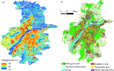 图3 南京市地表温度与城市土地利用对比图