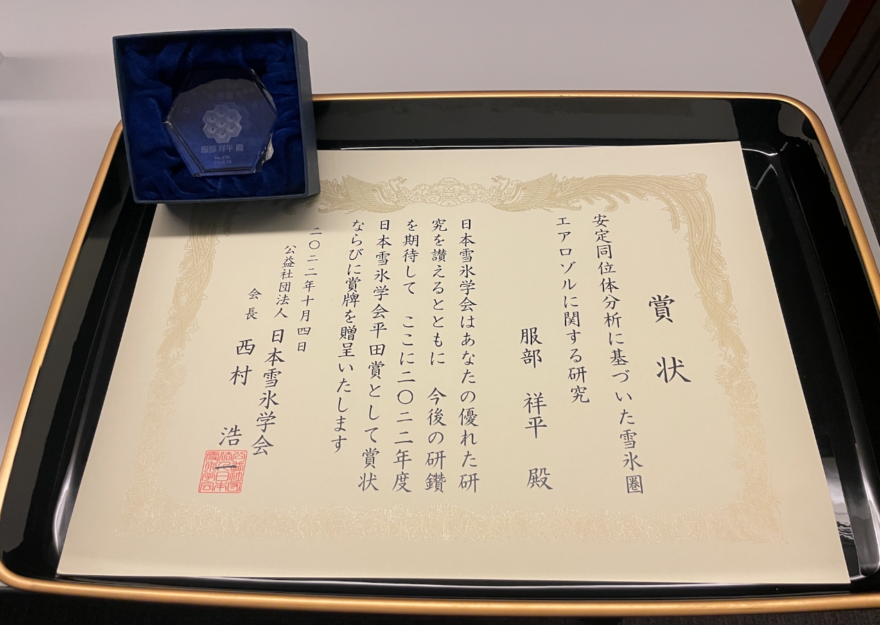 2022年10月4日,公司服部祥平副教授因其在“基于稳定同位素分析的冷冻层气溶胶研究”上取得的成就被日本冰川学会授予2022年度平田奖。